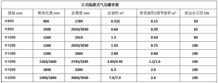 橡膠隔膜可舒張 20 萬次以上,充氣后可長期使用。隔膜為食品級(jí)天然橡膠隔膜可以應(yīng)用在飲用水系統(tǒng)中。